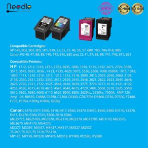 - Compatible Printers Cartridges- HP 678, 802, 803, 805, 901, 818, 21, 22, 27, 28, 46, 56, 57, 680, 685, 703, 704, 808, 818, 900, 920, 960 and Canon PG 40, 47, 88, 89, 740, 745, 810, 830 and, CL 41, 57, 98, 99, 741, 746, 811, 831 Proudly Made in India. Enjoy High Yield performance of 10000 pages with 5% coverage.
